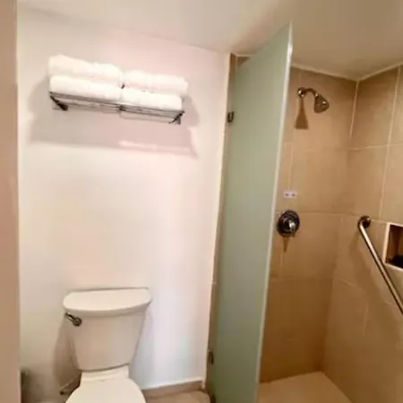 O apartamento Vacation getaway with beach access & balcony tem 1 camas. Há 1 casas de banho.